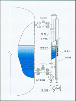 側(cè)裝式磁翻柱液位計的顯著特點是液體介質(zhì)與指示器完全隔離,所以在任何情況下都非常安全、可靠、耐用,而且各種型號的液位計配上液位報警、控制開關(guān),可實現(xiàn)液位或界位的上、下限越位報警,控制或連鎖;配上靜壓式液位變送器或干簧—電阻式液位變送器,可將液位。界位信號轉(zhuǎn)換成二線制4-20mADC標(biāo)準(zhǔn)信號,實現(xiàn)遠(yuǎn)距離指示、檢測、記錄與控制。該系列側(cè)裝式磁翻柱液位計可廣泛適用于水電、火電、石油、化工冶金環(huán)保、船舶、建筑、食品等各行各業(yè)生產(chǎn)過程中的液位測量與控制。