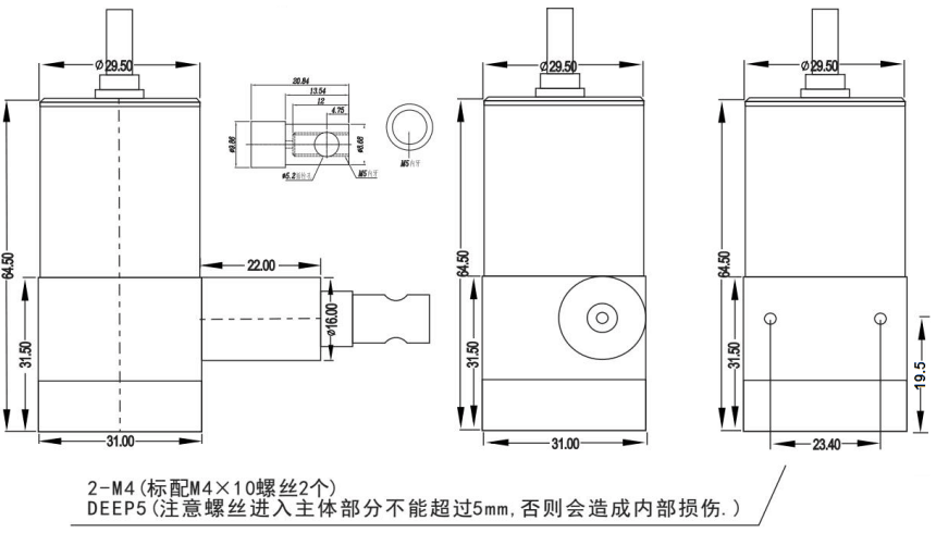 1、利用安裝支架或底部4個固定螺絲孔,依現(xiàn)場及機(jī)器安裝空間設(shè)施需要,選擇正確的方位直接安裝。